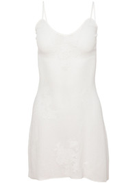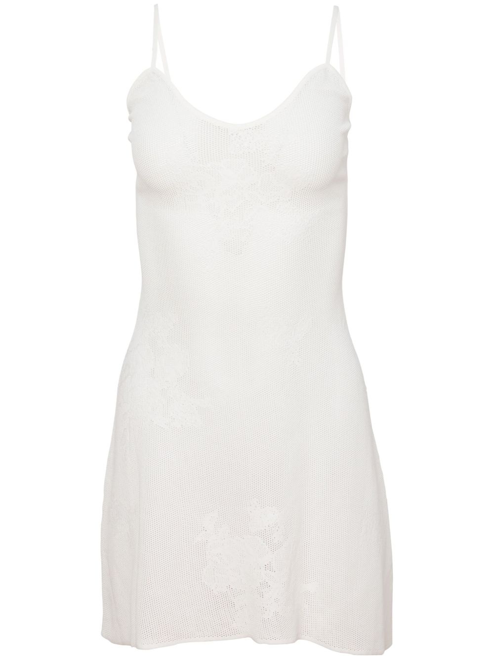 pointelle-knit lace mini dress Highlights - White - Pointelle knit - V-neck - Adjustable spaghetti straps - Thigh-length - Curved hem Imported Composition Rayon 77%, Nylon 23%