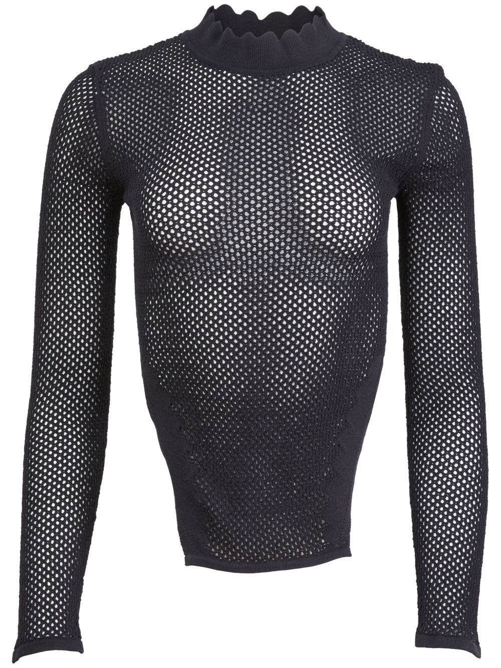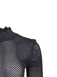 pointelle-knit scalloped top Highlights - Black - Stretch-cotton - Mesh design - Knitted construction - High neck - Scallop edge - Long sleeves - High-low hem Imported Composition Cotton 64%, Elastane 36%