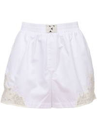 poplin boxer shorts Highlights - White - Cotton - Poplin texture - Applique logo - Floral-lace detailing - High waist - Elasticated waistband - Two side slash pockets - Thigh-length Imported Composition Cotton 100%