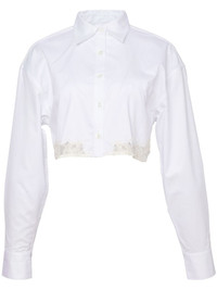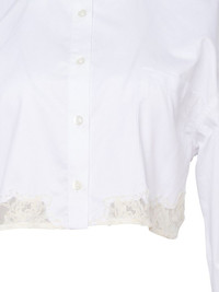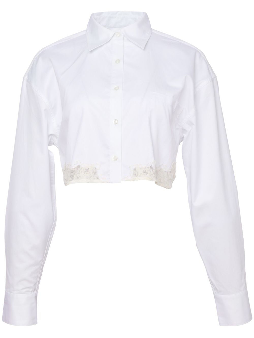 poplin cropped shirt Highlights - White - Cotton - Poplin texture - Lace trim - Spread collar - Front button placket - Drop shoulder - Long sleeves - Buttoned cuffs - Chest patch pocket - Straight hem - Cropped Imported Composition Cotton 100%