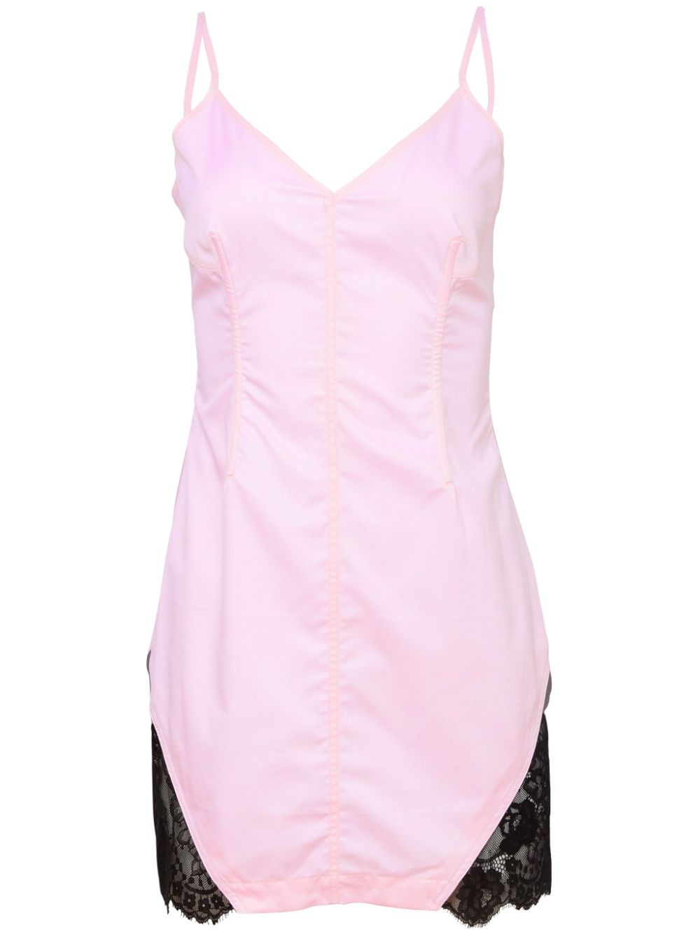 poplin mini dress Highlights - Baby pink/black - Cotton - Lace panelling - V-neck - Adjustable spaghetti straps - Boned bodice - Rear zip fastening - Thigh-length - Straight hem Imported Composition Cotton 100%
