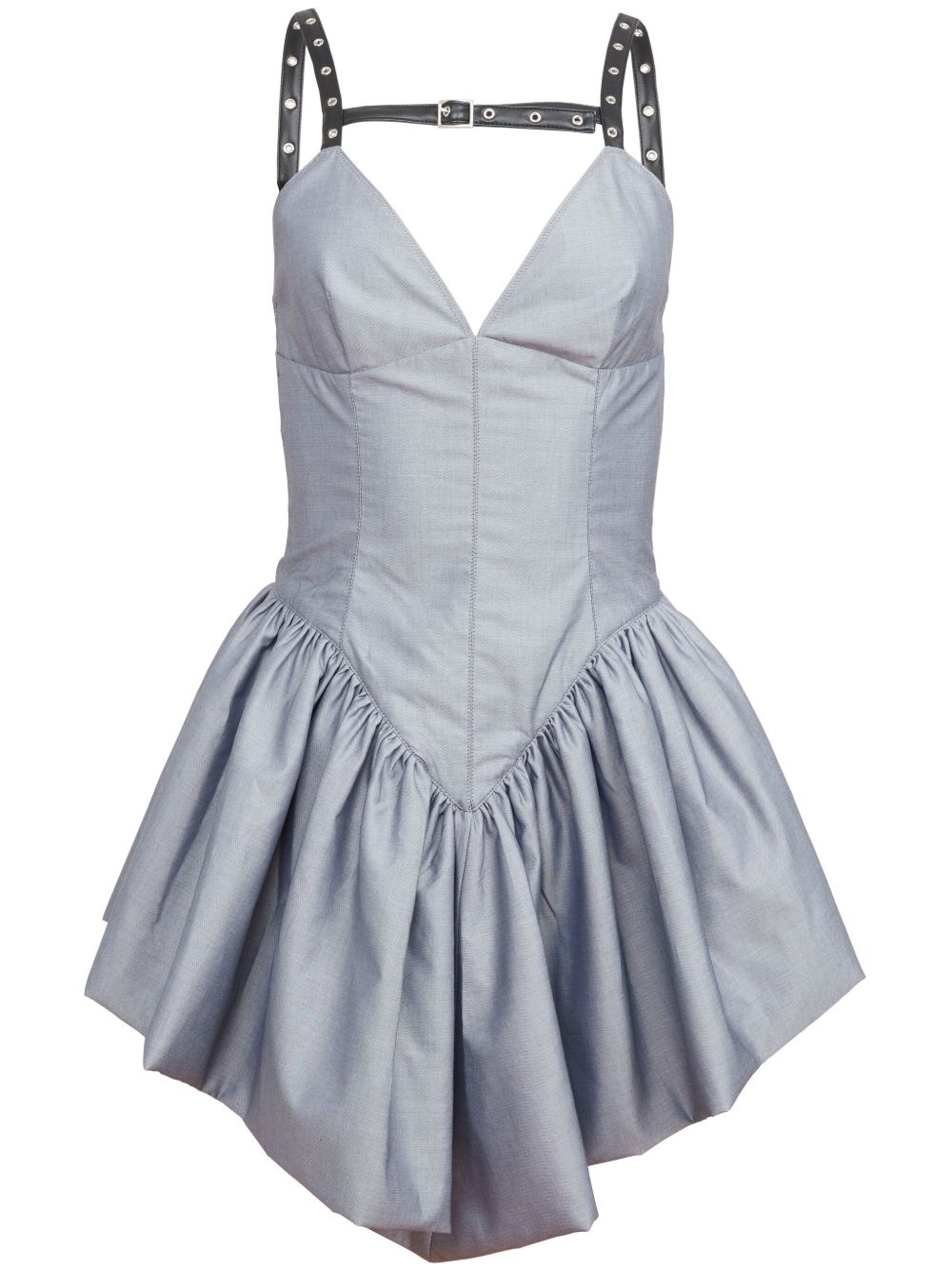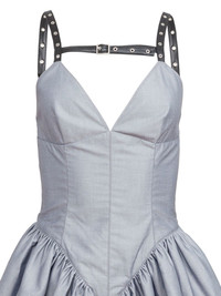 Poppy mini dress Highlights - Light grey - Poplin texture - Rear buckle fastening - V-neck - Fitted waistline - Sleeveless - Flared hem - Thigh-length Imported Composition Lining: Polyamide 100% Outer: Polyamide 100%