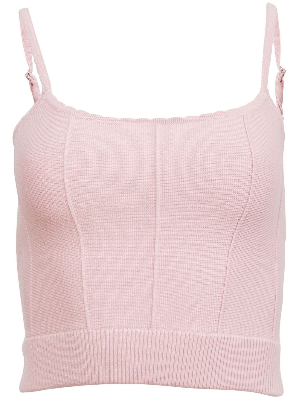 ribbed-knit tank top Highlights - Light pink - Adjustable shoulder straps - Ribbed knit - Elasticated hem Imported Composition Viscose 72%, Polyester 28%