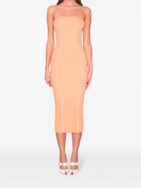 ribbed-knit tube dress Highlights - Tangerine orange - Ribbed knit - Tube design - Adjustable spaghetti straps - Mid-calf length - Straight hem Imported Composition Viscose 77%, Nylon 23% Washing instructions Hand Wash
