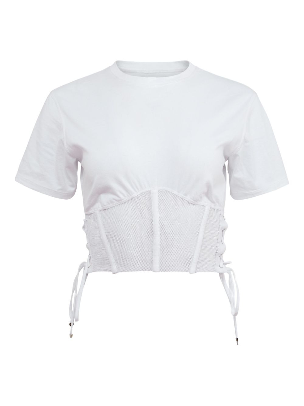 Sabrina T-shirt Highlights - White - Side tie fastening - Corset style - Round neck - Short sleeves Imported Composition Outer: Pima Cotton 100%, Cotton 100% Lining: Polyester 100% Washing instructions Hand Wash