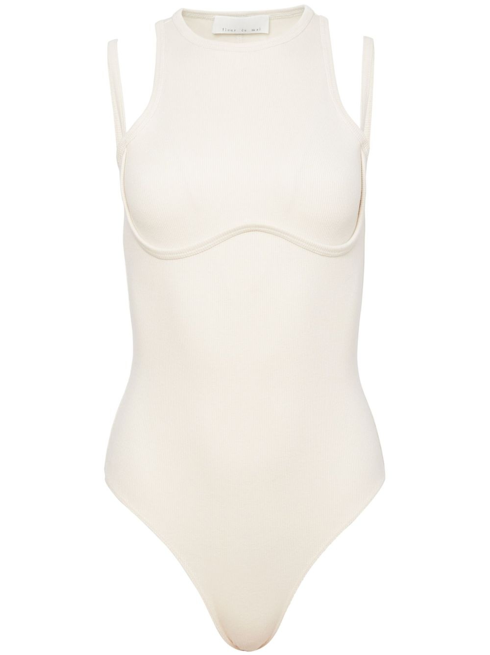 strappy ribbed bodysuit Highlights - Ecru - Stretch-cotton - Ribbed - Cut-out detailing - Round neck - Sleeveless - High cut - Thong style - Just a reminder that this piece must be tried on over your own garments. Imported Composition Cotton 97%, Spandex/Elastane 3%