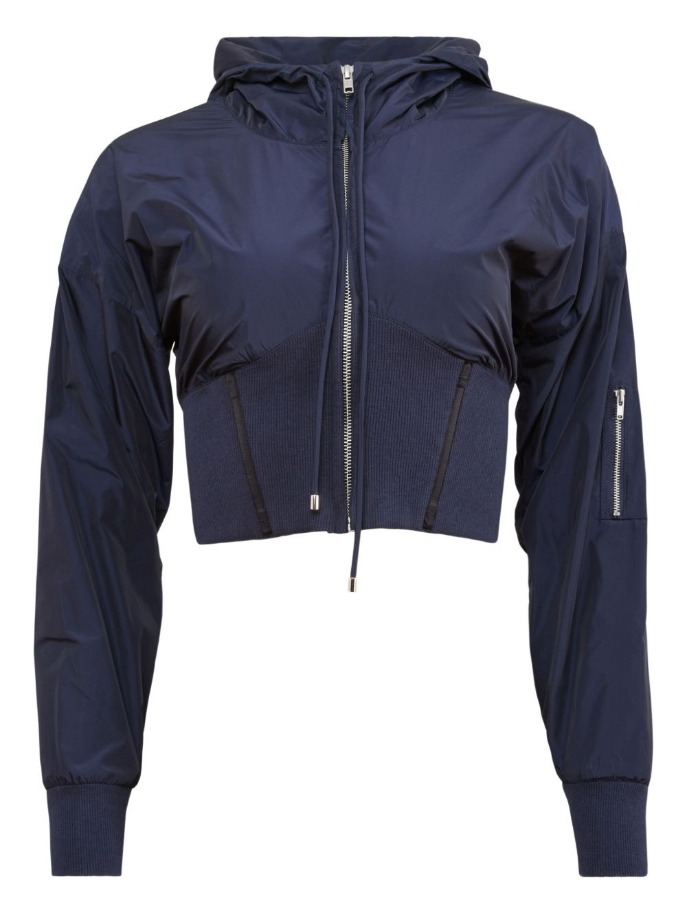 Trackstar jacket Highlights - Navy blue - Front zip fastening - Drawstring hood - Sleeve zip pocket - Ribbed cuffs and hem Imported Composition Outer: Polyester 95%, Polyamide 78%, Elastane 22%, Spandex/Elastane 5% Lining: Cotton 100% Washing instructions Hand Wash