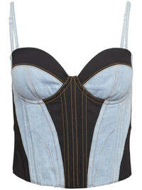 two-tone denim bustier Highlights - Black/light blue - Stretch-cotton - Denim - Two-tone design - Contrast stitching - Adjustable spaghetti straps - Bustier-style neckline - Rear zip fastening - Straight hem - Cropped Imported Composition Cotton 99%, Elastane 1%