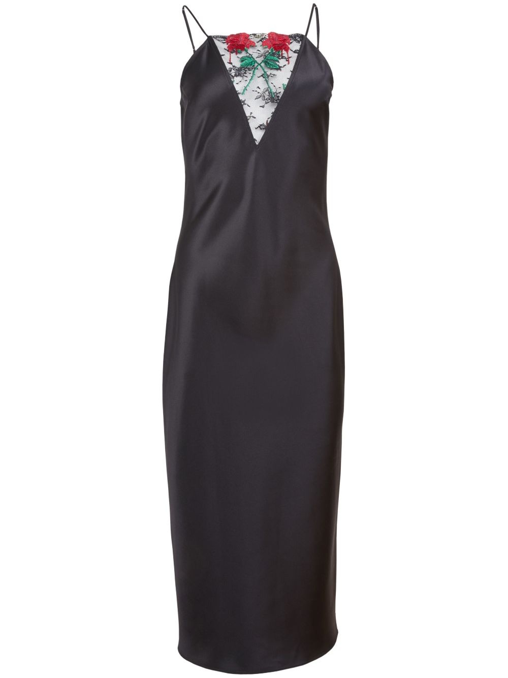 Vampire Rose embroidered slip dress Highlights - Black - Stretch-silk - Embroidered motif - Square neck - Sleeveless - Straight hem - Mid-length Imported Composition Polyester 100%, Silk 92%, Elastane 8%