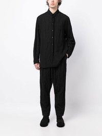 button-up long-sleeved shirt black virgin wool-cotton blend classic collar front button fastening long sleeves buttoned cuffs curved hem Made in Italy Composition Virgin Wool 72%, Cotton 23%, Metal (Other) 5% SIZE & FIT Model measurements Height 6 ft 3 in(1.9 m) Bust/Chest 34.64 in(88 cm) Hips 36.61 in(93 cm) Waist 27.55 in(70 cm) FittingInformation This piece fits true to size. We recommend you get your regular size Cut for a loose fit Made with a mid-weight non-stretch fabric Washing instructions Dry Clean Only