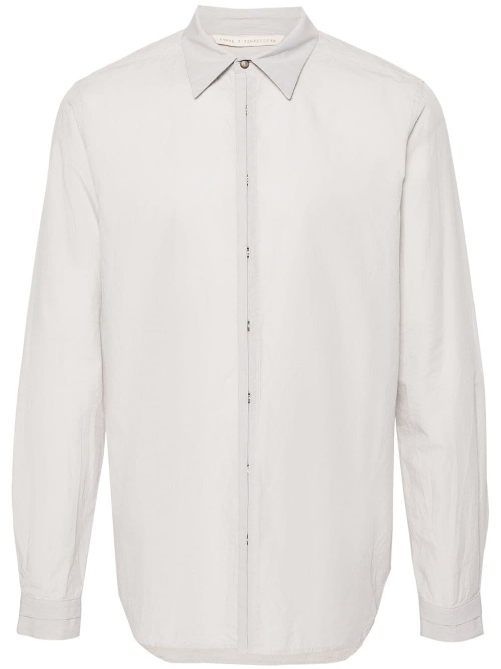 crinkled-finish cotton shirt Highlights - Heather grey - Cotton - Crinkled finish - Pointed flat collar - Concealed front button fastening - Long sleeves - Buttoned cuffs - Curved hem Made in Italy Composition Cotton 100% SIZE & FIT Model measurements Height 6 ft 1 in(1.86 m) Bust/Chest 37.4 in(95 cm) Hips 36.22 in(92 cm) Waist 29.52 in(75 cm) FittingInformation Designed for a regular fit, allowing for a comfortably loose fit throughout the body Made from a lightweight non-stretch fabric This piece fits true to size – take your usual size