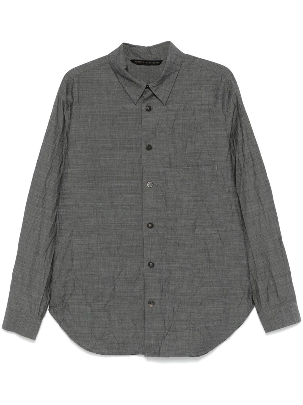 crinkled shirt Highlights - Anthracite grey - Virgin wool-cotton blend - Slub texture - Crinkled finish - Front button fastening - Classic collar - Long sleeves - Pleat detailing - Buttoned cuffs - Chest patch pocket - Curved hem Made in Italy Composition Virgin Wool 71%, Cotton 29% SIZE & FIT Model measurements Height 6 ft 1 in(1.85 m) Bust/Chest 35.82 in(91 cm) Hips 37.79 in(96 cm) Waist 29.13 in(74 cm) FittingInformation Designed for a relaxed fit, this piece allows for comfort and movement when worn Made from a midweight non-stretch fabric