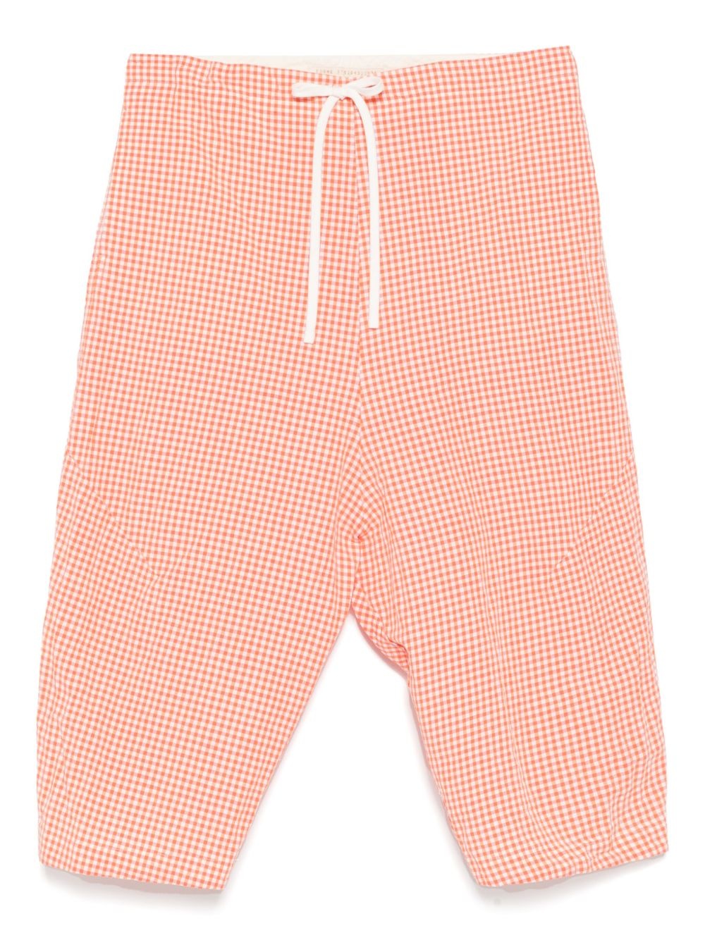 gingham check pattern pants Highlights - Red - Drawstring waist - Two side inset pockets - Rear patch pocket - Straight hem Made in Italy Composition Outer: Linen/Flax 56%, Cotton 44% Lining: Cotton 100%