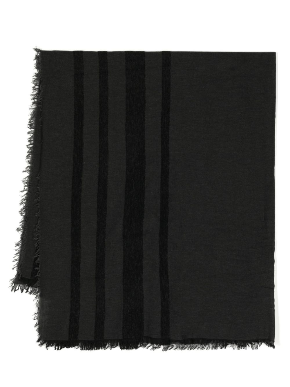 Musa striped scarf Highlights - Anthracite grey - Wool-cotton blend - Lightweight construction - Vertical stripe pattern - Frayed edge Made in Italy Composition Wool 63%, Cotton 32%, Elastane 5% SIZE & FIT Measurement LENGTH 61.41 in(156 cm) WIDTH 37.4 in(95 cm) Washing instructions Dry Clean Only
