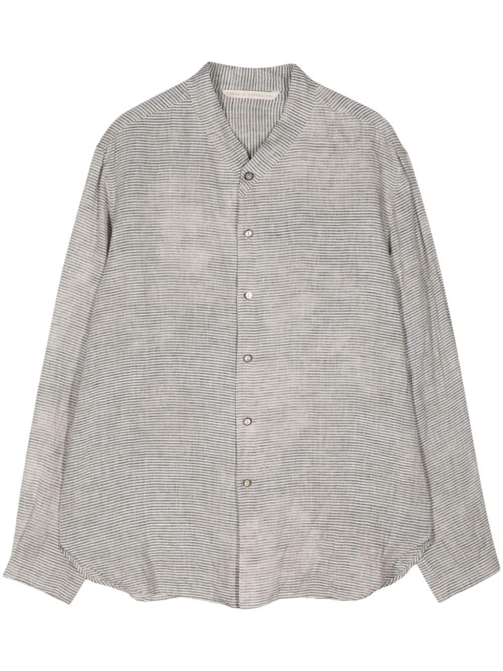 pinstripe linen shirt Highlights - White - Linen - Pinstripe pattern - Long sleeves - Band collar - Front button fastening - Buttoned cuffs - Curved hem Made in Italy Composition Linen/Flax 100%