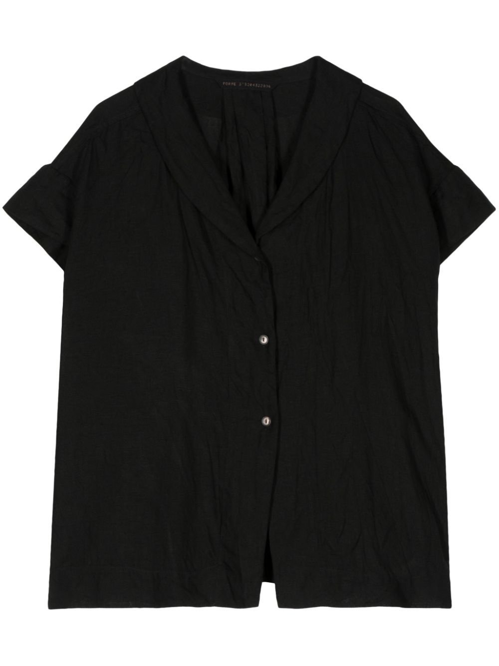 shawl-collar linen shirt Highlights - Black - Linen/flax - Shawl collar - Short sleeves - Pleat detailing to the rear - Asymmetric hem - Front button fastening Made in Italy Composition Linen/Flax 100%