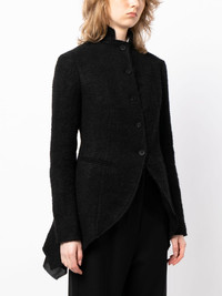 stand up-collar button-up jacket Highlights - Black - Textured finish - Tonal stitching - Stand-up collar - Front button fastening - Long sleeves - Curved hem - Two front welt pockets Made in Italy Composition Body: Hemp 50%, Alpaca 31%, Polyamide 11%, Wool 8% Lining: Cotton 100% Sleeve Lining: Viscose 50%, Acetate 50% SIZE & FIT Model measurements Height 5 ft 10 in(1.77 m) Bust/Chest 33.46 in(85 cm) Hips 35.43 in(90 cm) Waist 23.62 in(60 cm) FittingInformation Designed to be unstructured, offering a loose fit throughout The vented hem offers movement at the rear Made from a midweight non-stretch fabric This piece fits true to size – take your usual size Washing instructions Dry Clean Only