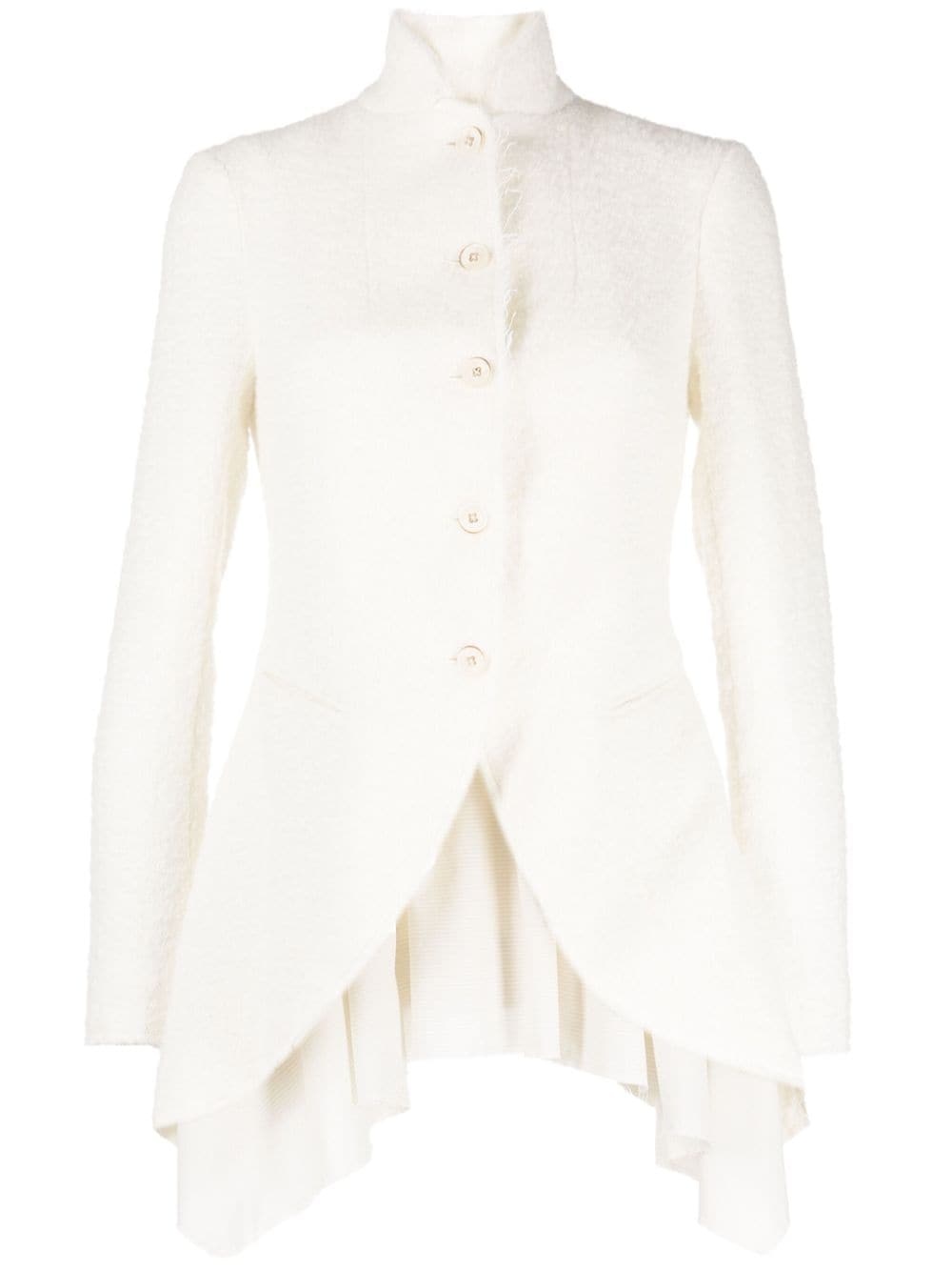 stand up-collar button-up jacket Highlights - Ecru - Textured finish - Tonal stitching - Stand-up collar - Front button fastening - Long sleeves - Curved hem - Two front welt pockets Made in Italy Composition Body: Hemp 58%, Alpaca 27%, Polyamide 8%, Wool 7% Sleeve Lining: Acetate 50%, Viscose 50% Lining: Cotton 90%, Polyamide 10% SIZE & FIT Model measurements Height 5 ft 10 in(1.77 m) Bust/Chest 33.46 in(85 cm) Hips 35.43 in(90 cm) Waist 23.62 in(60 cm) Washing instructions Dry Clean Only