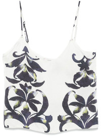 floral-print top Highlights - White - Adjustable spaghetti straps - Scoop neck - Cropped Made in Italy Composition Viscose 100% Washing instructions Machine Wash
