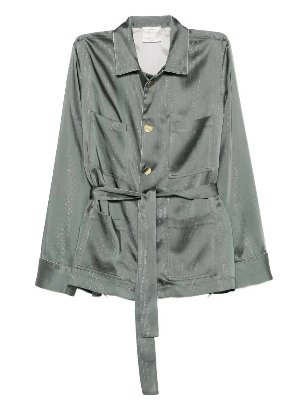 metallic-detail belted jacket Highlights - Green - Metallic detail - Belted waist - Button fastening - Patch pockets - Long sleeves Made in Italy Composition Outer: Acetate 64%, Viscose 34%, Metallized Polyester 1% Lining: Acetate 60%, Viscose 40% SIZE & FIT Model measurements Height 5 ft 9 in(1.75 m) Bust/Chest 34.64 in(88 cm) Hips 36.61 in(93 cm) Waist 26.37 in(67 cm) Washing instructions Dry Clean Only
