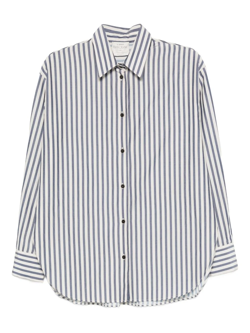 striped long-sleeve shirt Highlights - Blue - Vertical stripes - Button fastening - Classic collar - Long sleeves - Curved hem Made in Italy Composition Polyester 52%, Cotton 48% SIZE & FIT Model measurements Height 5 ft 11 in(1.8 m) Bust/Chest 31.49 in(80 cm) Hips 36.61 in(93 cm) Waist 24.4 in(62 cm) Washing instructions Machine Wash
