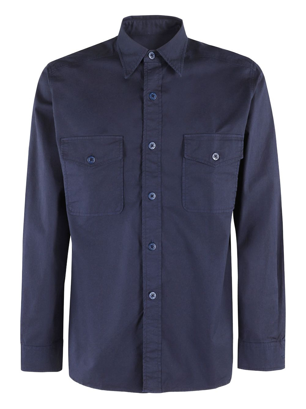 cotton shirt Highlights - Indigo blue - Front button placket - Buttoned cuffs - Two chest flap pockets - Straight-point collar Imported Composition Cotton 100%