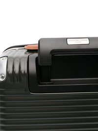 Bank Light Spinner 53 front-pocket suitcase Highlights - Olive green - Polycarbonate - Wide ribbed - Debossed logo to the side - Bi-fold design - Butterfly metallic locks - Combination lock - Front zip-fastening compartment - Single logo-debossed leather top handle - Single flat side handle - Single extendable top handle - Four wheels - Full lining - Multiple zip-fastening pockets - Multiple internal slip pockets - Partitioned compartment - Internal buckle-fastening straps - Detachable internal partition - Silver-tone hardware Made in Italy Composition Outer: Polycarbonite 100% SIZE & FIT Measurement DEPTH 10.03 in(25.5 cm) HANDLE 0.78 in(2 cm) HEIGHT 20.86 in(53 cm) WIDTH 14.56 in(37 cm)