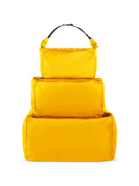 Cube Foldable packing bag Highlights - Pineapple yellow - Zip closure - Top handle - Buckle fastening Imported Composition Outer: ECONYL® 95%, Calf Leather 5% SIZE & FIT Measurement DEPTH 9.05 in(23 cm) HEIGHT 9.44 in(24 cm) WIDTH 17.71 in(45 cm)