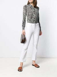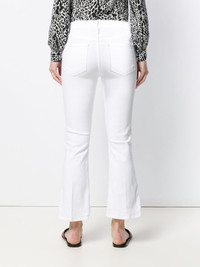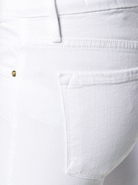 bootcut jeans White stretch cotton blend bootcut jeans from FRAME featuring a low rise, a button and zip fly, belt loops, a five pocket design and a cropped length. Made in United Kingdom Composition Cotton 92%, Polyester 6%, Spandex/Elastane 2% SIZE & FIT Model measurements Height 5 ft 10 in(1.77 m) Bust/Chest 35.03 in(89 cm) Hips 35.03 in(89 cm) Waist 23.62 in(60 cm)