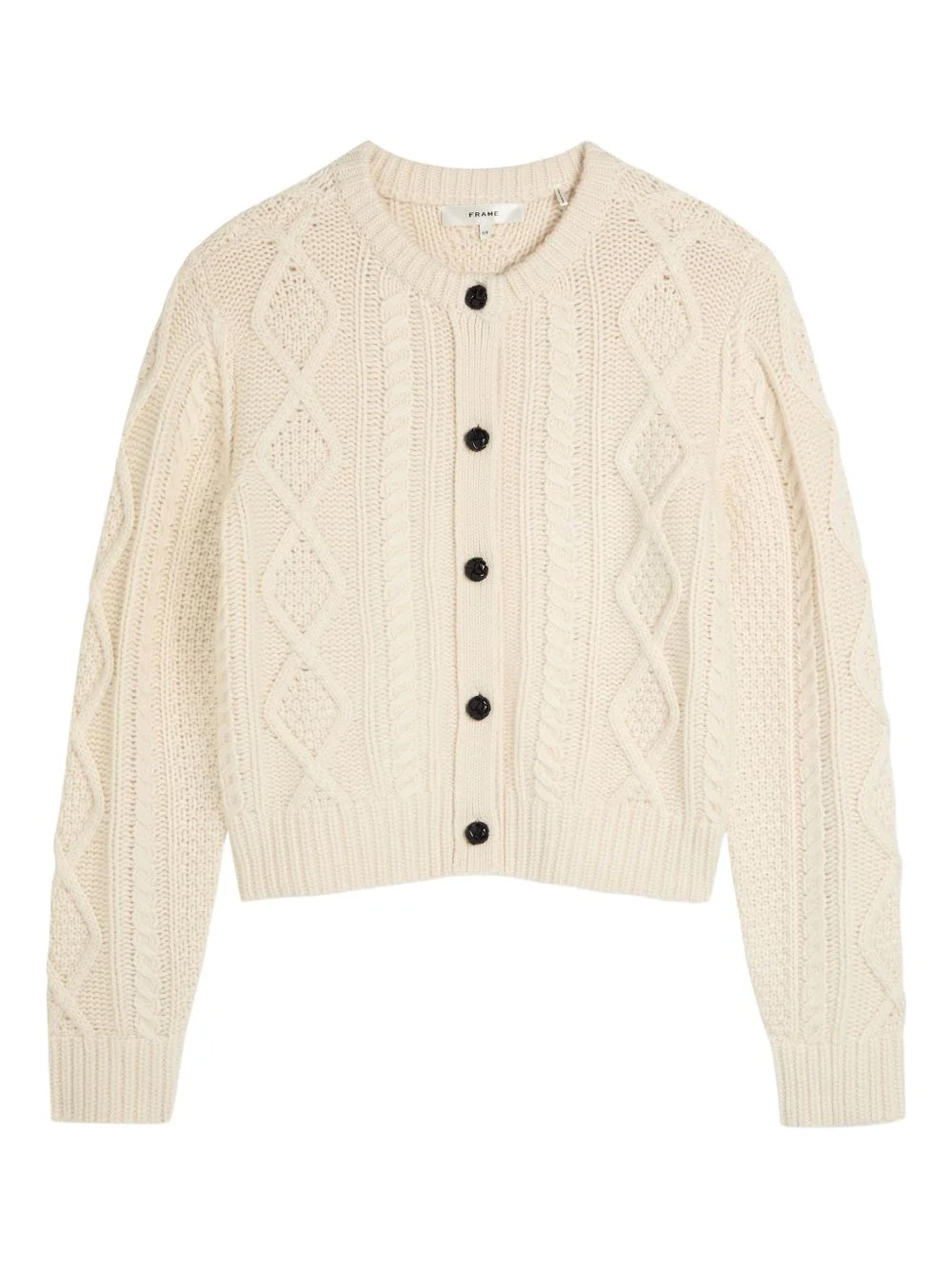 Cable-knit buttoned sweater Highlights - Cream - Cable knit - Button fastening - Round neck - Long sleeves - Ribbed trim Imported Composition Cashmere 100% Washing instructions Dry Clean Only