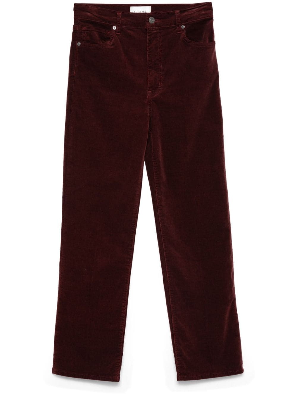 corduroy trousers Highlights - Burgundy - Cotton blend - Corduroy - Front button and zip fastening - Belt loops - Classic five pockets - Pressed crease - Straight leg Imported Composition Cotton 71%, Rayon 22%, Polyester 6%, Spandex/Elastane 1% SIZE & FIT Model measurements Height 5 ft 9 in(1.76 m) Bust/Chest 34.25 in(87 cm) Hips 35.82 in(91 cm) Waist 23.62 in(60 cm) FittingInformation Designed for a straight-leg fit, these trousers allow for a close fit at the waist and an unrestricted, comfortable fit over the leg Made from a midweight stretch fabric, this piece offers elasticity and flexibility when worn This piece fits small – take one size up