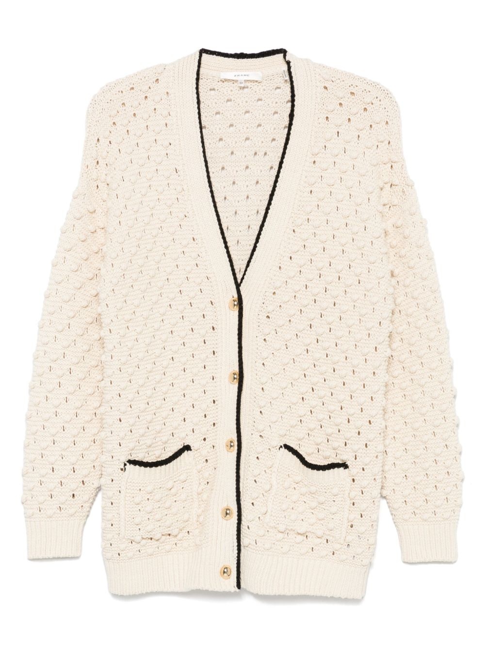 cotton cardigan Highlights - Cream white - Front button fastening - Plunging v-neck - Long sleeves Imported Composition Cotton 100% SIZE & FIT Model measurements Height 5 ft 11 in(1.8 m) Bust/Chest 31.49 in(80 cm) Hips 35.82 in(91 cm) Waist 24.8 in(63 cm) FittingInformation Designed to be unstructured, offering a loose fit throughout Made with a heavyweight knit, this piece offers some stretch Washing instructions Dry Clean Only
