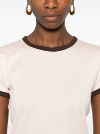 crew-neck cotton t-shirt Highlights - Pastel pink - Round neck - Short sleeves - Brown trim - Cotton Imported Composition Cotton 100% SIZE & FIT Model measurements Height 5 ft 10 in(1.78 m) Bust/Chest 31.49 in(80 cm) Hips 37 in(94 cm) Waist 23.62 in(60 cm) Washing instructions Read Manufacturer Guidelines