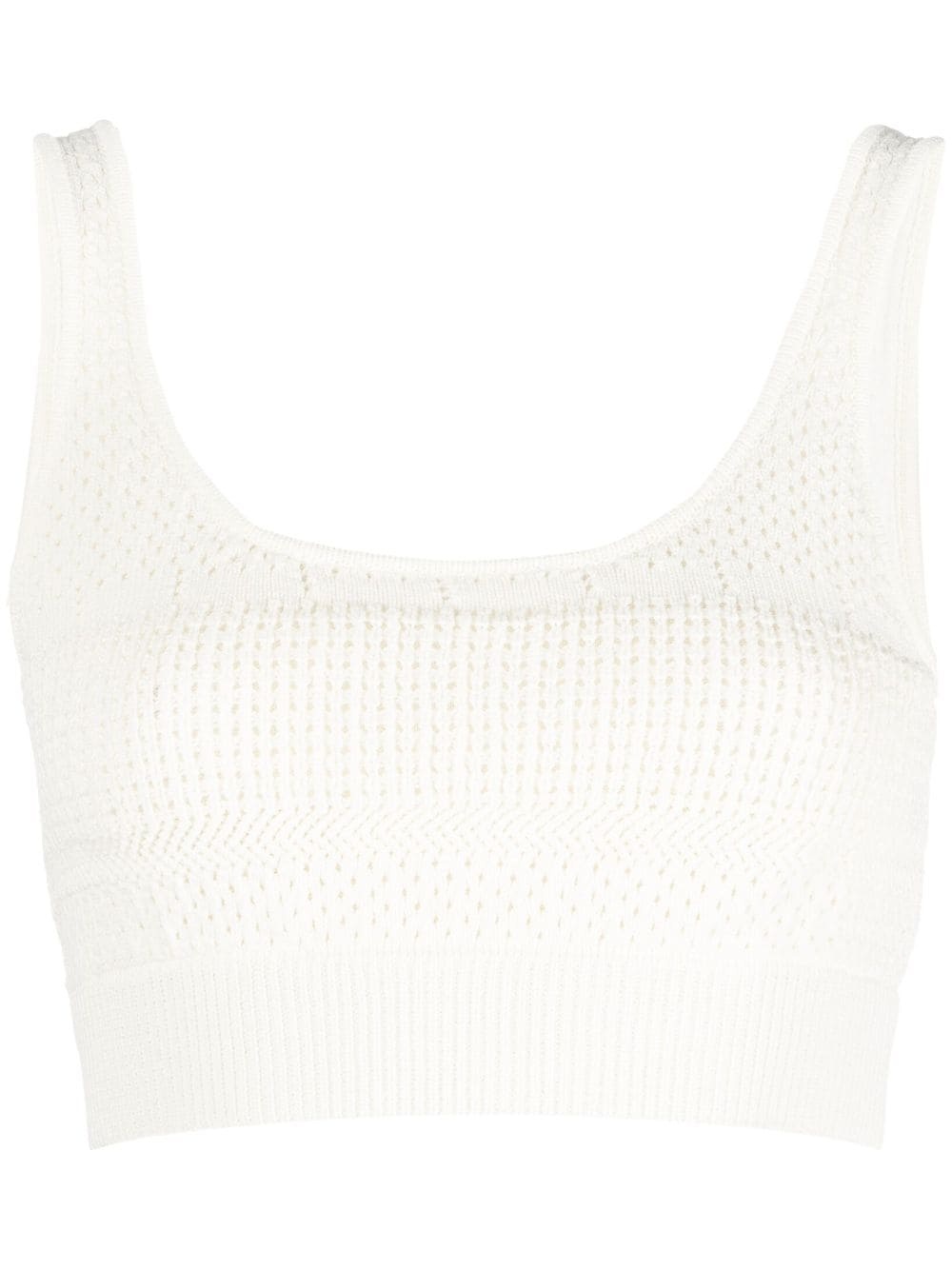 crochet-knit cropped top Highlights - Off-white - Knitted construction - Crochet knit - Perforated detailing - Scoop neck - Sleeveless - Straight hem - Cropped Imported Composition Outer: Rayon 62%, Nylon 38% Lining: Viscose 100% SIZE & FIT Model measurements Height 5 ft 10 in(1.77 m) Bust/Chest 29.92 in(76 cm) Hips 34.25 in(87 cm) Waist 23.62 in(60 cm) FittingInformation Designed for a close fit throughout The ribbed hem offers a close, comfortable fit Made with a midweight knit, this piece offers some stretch This piece fits true to size – take your usual size