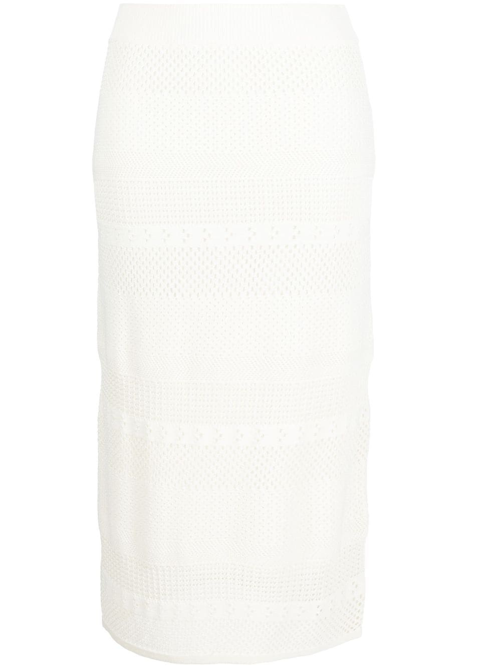 crochet-knit pencil skirt Highlights - Off-white - Knitted construction - Crochet knit - High waist - Perforated detailing - Elasticated waistband - Straight hem - Mid-length Made in Italy Composition Lining: Viscose 100% Outer: Rayon 62%, Nylon 38% SIZE & FIT Model measurements Height 5 ft 10 in(1.77 m) Bust/Chest 29.92 in(76 cm) Hips 34.25 in(87 cm) Waist 23.62 in(60 cm)