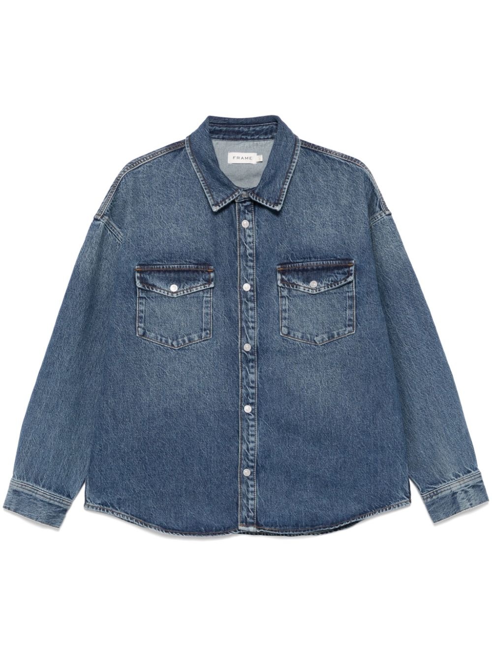 denim shirt Highlights - Indigo blue - Front button fastening - Two stud-fastening chest pockets - Long sleeves - Press-stud fastening cuffs Imported Composition Regenerative Cotton 100% SIZE & FIT Model measurements Height 6 ft 0 in(1.84 m) Bust/Chest 35.82 in(91 cm) Hips 37 in(94 cm) Waist 28.34 in(72 cm) FittingInformation Designed to be unstructured, offering a loose fit throughout Sturdy and hard-wearing, this denim piece offers no stretch Washing instructions Machine Wash