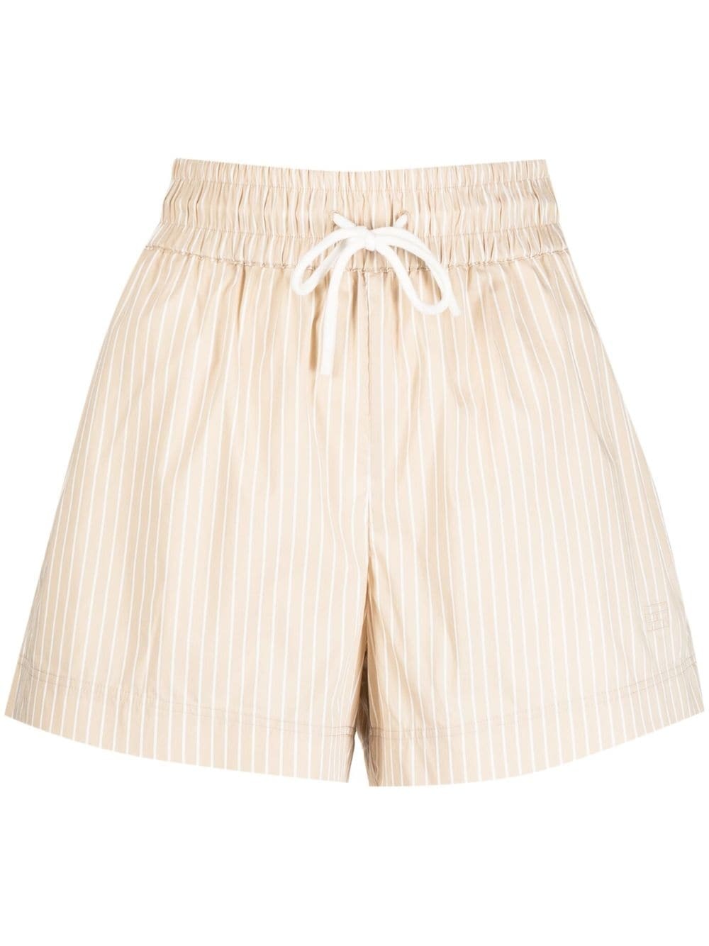 drawstring-waist thigh-length shorts Highlights - Sand beige - Cotton blend - Stretch-design - Stripe print - Embroidered logo to the front - Elasticated drawstring waistband - Two side slit pockets - Thigh-length Made in United Kingdom Composition Cotton 72%, Nylon 26%, Spandex/Elastane 2% SIZE & FIT Model measurements Height 5 ft 9 in(1.76 m) Bust/Chest 31.1 in(79 cm) Hips 35.03 in(89 cm) Waist 24.4 in(62 cm) FittingInformation Designed for a loose fit, offering comfort and movement when worn Adjust this piece’s waistband to your preference using the drawstring Made from a midweight non-stretch fabric This piece fits true to size – take your usual size
