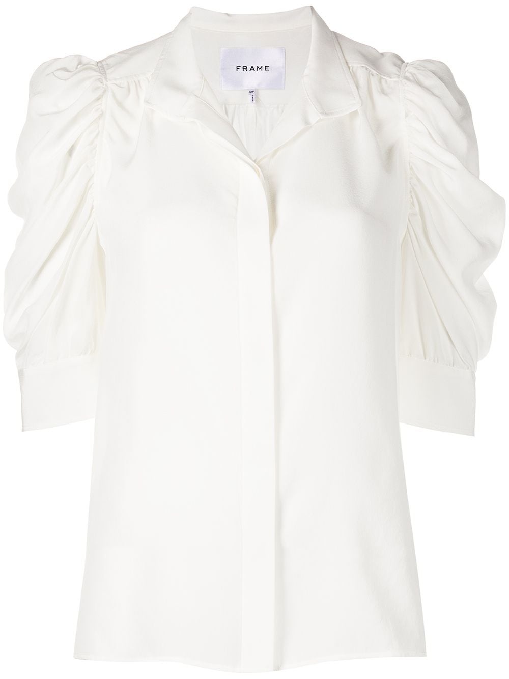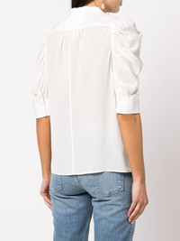 Gillian ruched shirt white silk classic collar front button fastening three-quarter length sleeves ruched detailing Imported Composition Body: Silk 100% SIZE & FIT Model measurements Height 5 ft 10 in(1.77 m) Bust/Chest 29.92 in(76 cm) Hips 35.03 in(89 cm) Waist 24.01 in(61 cm) Measurement SLEEVE LENGTH 16.49 in(41.9 cm) LENGTH 26.49 in(67.3 cm) WAIST 42 in(106.7 cm) BUST 42 in(106.7 cm) FittingInformation This piece fits true to size. We recommend you get your regular size Cut for a slim fit Made with a lightweight fabric