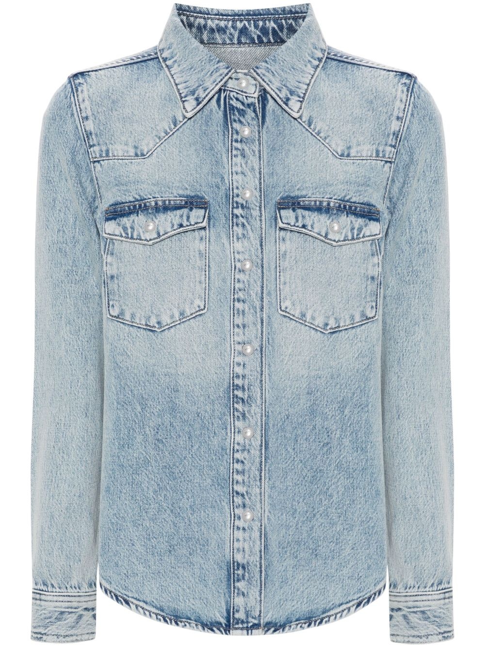 Heritage washed-denim shirt Highlights - Blue - Cotton blend - Washed denim - Classic collar - Logo-engraved buttons - Front press-stud fastening - Long sleeves - Press-stud fastening cuffs - Curved hem Imported Composition Cotton 85%, Recycled Cotton 15% SIZE & FIT Model measurements Height 5 ft 10 in(1.78 m) Bust/Chest 33.07 in(84 cm) Hips 36.61 in(93 cm) Waist 24.8 in(63 cm) FittingInformation Designed for a slim fit that sits just away from the body offering a close yet comfortable fit Sturdy and hard-wearing, this denim piece offers no stretch This piece fits true to size – take your usual size Washing instructions Dry Clean Only