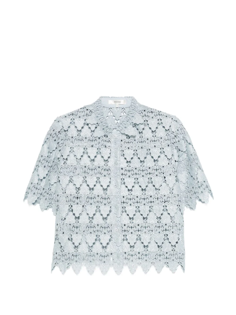 lace shirt Highlights - Blue - Lace - Scalloped hem - Button fastening - Classic collar - Short sleeves Imported Composition Polyester 100% Washing instructions Dry Clean Only