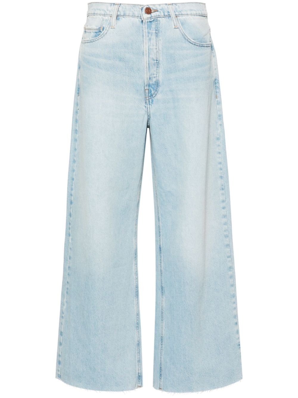 Le Low Babby low-rise wide-leg jeans Highlights - Light blue - Regenerative cotton-recycled cotton blend - Denim - Whiskering effect - Contrast stitching - Low-rise - Belt loops - Classic five pockets - Wide leg - Raw-cut edge - Front button fastening Imported Composition Regenerative Cotton 80%, Recycled Cotton 20% SIZE & FIT Model measurements Height 5 ft 11 in(1.8 m) Bust/Chest 33.07 in(84 cm) Hips 37.4 in(95 cm) Waist 25.19 in(64 cm) FittingInformation Designed with a wide leg cut, these jeans allow for a close fit at the waist and offer a loose and roomy fit over the leg Sturdy and hard-wearing, this denim piece offers no stretch This piece fits true to size – take your usual size Washing instructions Machine Wash