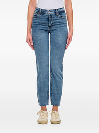 Le Sleek jeans Highlights - Indigo blue - Concealed fly and button fastening - Classic five pockets - Raw-cut hem Imported Composition Cotton 49%, Recycled Cotton 21%, Recycled Polyester 17%, Lyocell 11%, Elastane 2%