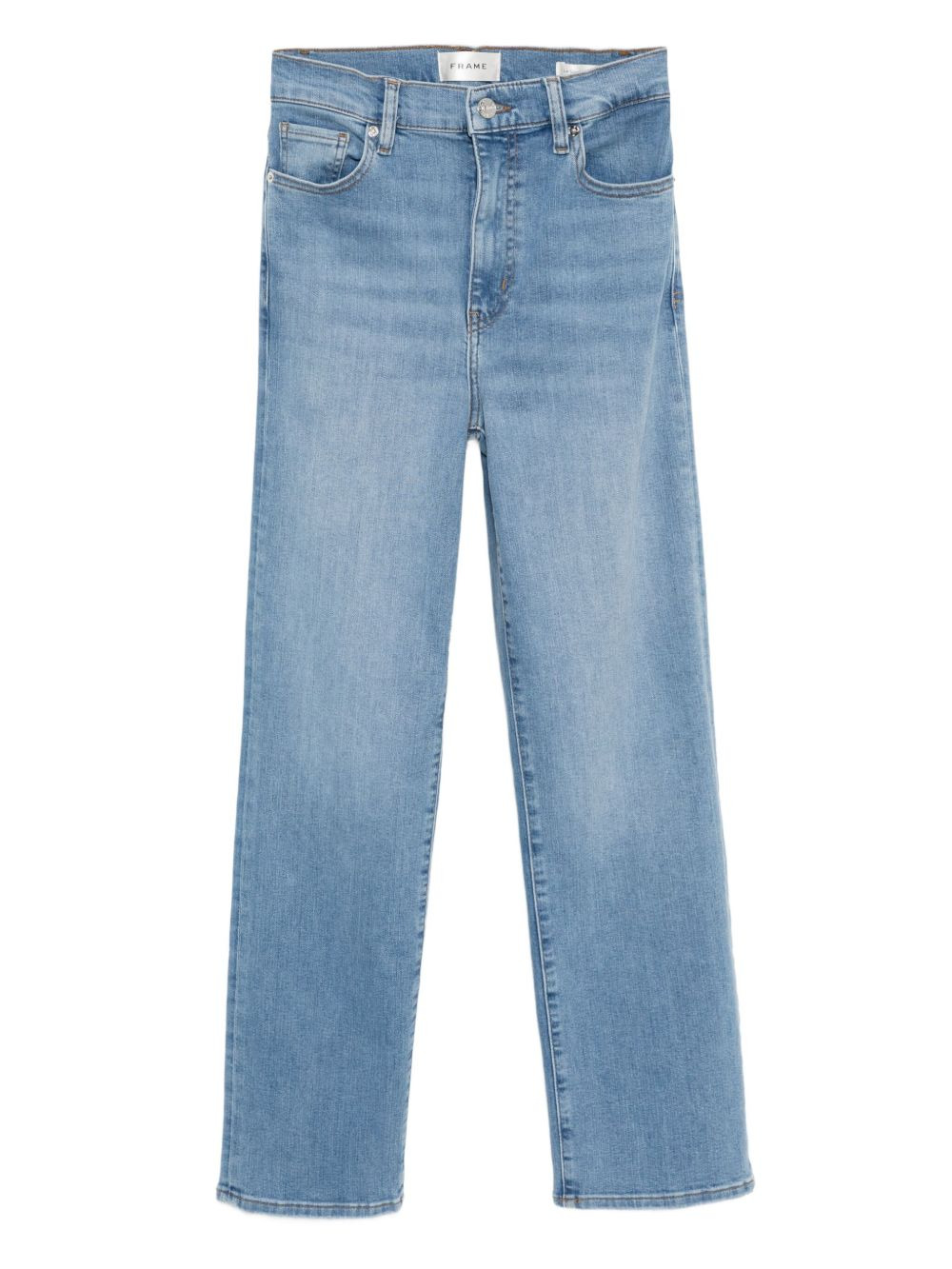 Le Sleek Straight jeans Highlights - Sky blue - Front button and zip fastening - Belt loops - Classic five pockets Imported Composition Cotton 49%, Recycled Cotton 21%, Recycled Polyester 17%, Lyocell 11%, Elastane 2% SIZE & FIT Model measurements Height 5 ft 10 in(1.77 m) Bust/Chest 30.31 in(77 cm) Hips 34.25 in(87 cm) Waist 25.19 in(64 cm) FittingInformation Designed for a slim fit, these jeans offer a close fit at the waist and sit just away from the leg Constructed from stretch denim, this piece offers a stretch fit with durability Washing instructions Machine Wash