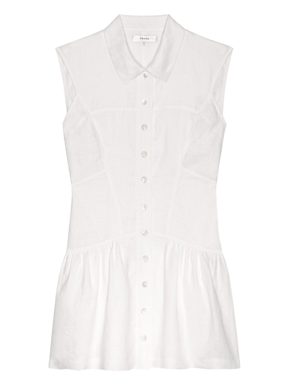 linen dress Highlights - White - Front button fastening - Classic collar - Sleeveless - Straight hem Imported Composition Linen/Flax 100%