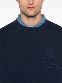 logo-embroidered sweatshirt Highlights - Navy blue - Crew neck - Drop shoulder - Long sleeves Imported Composition Cotton 85%, Polyester 15% SIZE & FIT Model measurements Height 6 ft 2 in(1.87 m) Bust/Chest 37.79 in(96 cm) Hips 37.79 in(96 cm) Waist 30.31 in(77 cm) FittingInformation Designed for a relaxed fit, this piece allows for comfort and movement when worn The ribbed hem offers a close, comfortable fit Made from a midweight non-stretch fabric, this piece offers minimal elasticity when worn