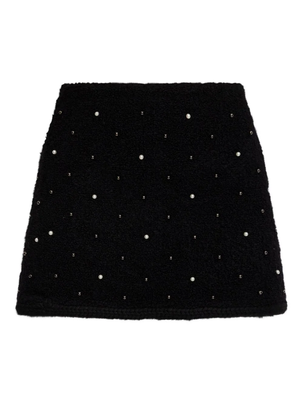 pearl-embellished mini skirt Highlights - Black - Pearl embellishment - Textured fabric - Mini length Imported Composition Wool 90%, Nylon 10% Washing instructions Read Manufacturer Guidelines