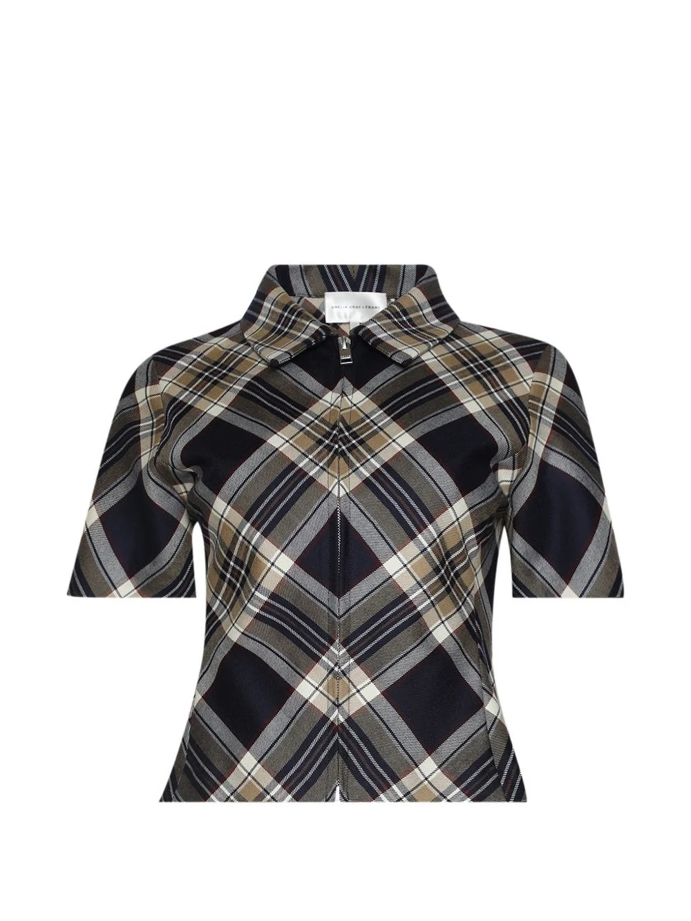 plaid zip short-sleeve top