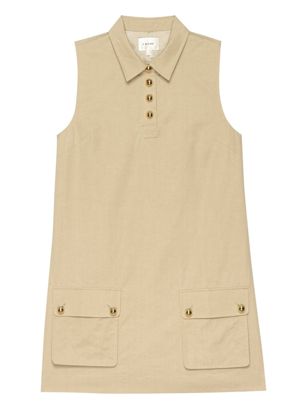 pocket-detail collared shirt dress Highlights - Light khaki - Collared neckline - Button fastening - Sleeveless - Two patch pockets - Gold-tone buttons Imported Composition Fabric 100% Washing instructions Read Manufacturer Guidelines