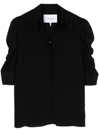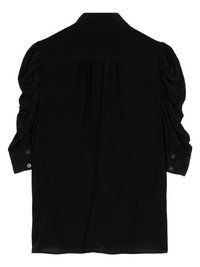 ruched silk blouse Highlights - Black - Silk - Twill weave - Ruched detailing - Stand-up collar - Front button fastening - Three-quarter length puff sleeves - Buttoned cuffs - Straight hem Made in United States Composition Silk 100% Washing instructions Dry Clean Only