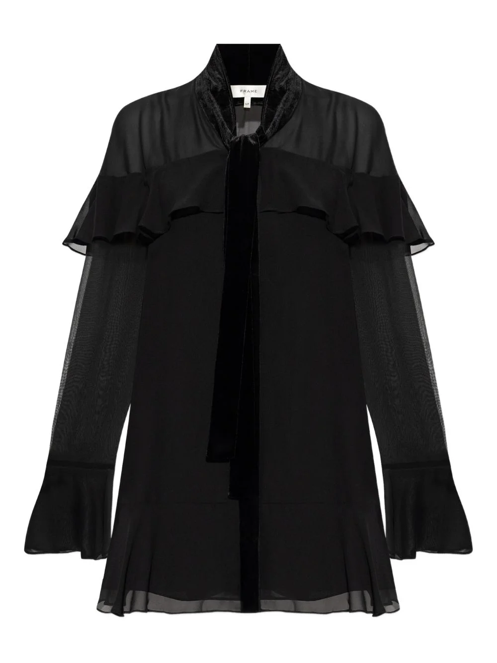 ruffled-details tie-neck dress Highlights - Black - Tie detail - Ruffled trims - Long sleeves - Flared cuffs - Flared hem Imported Composition Silk 100% Washing instructions Read Manufacturer Guidelines